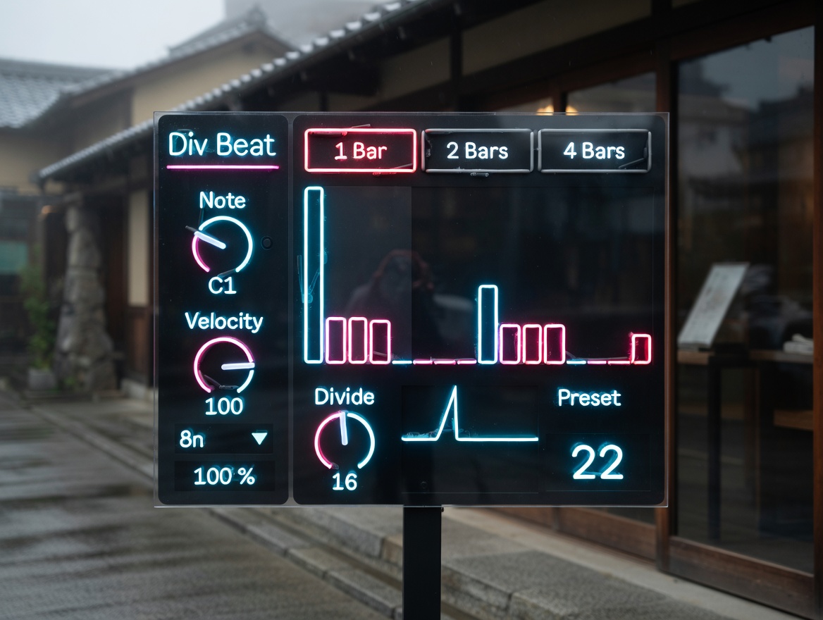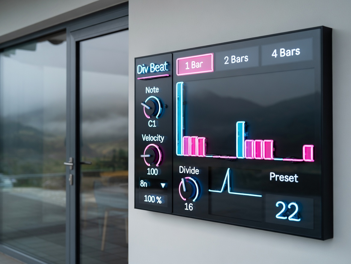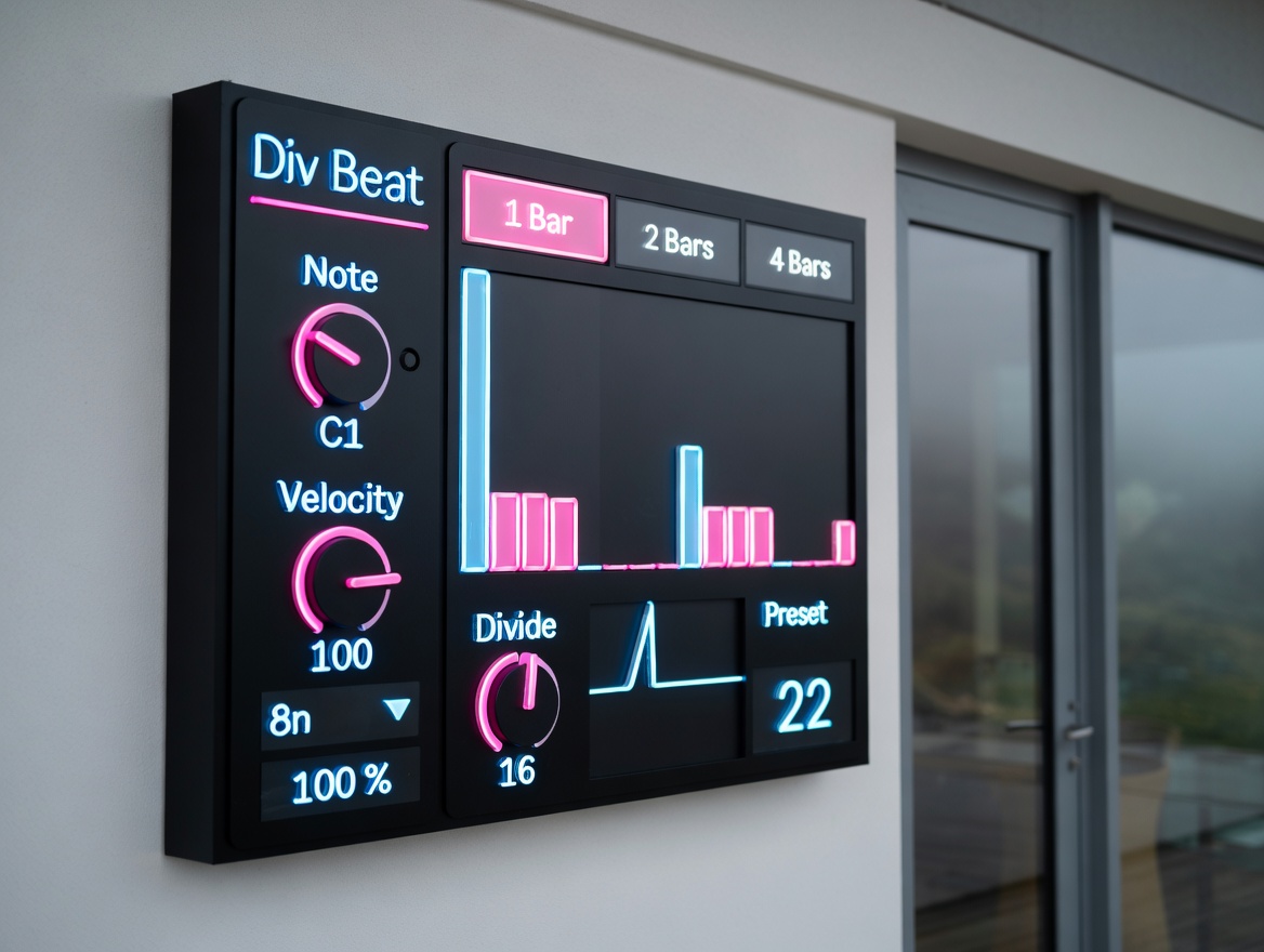 Div Beat does not treat chance as a coin flip. It lets you steer along a continuum between regular pulse and statistical texture. Small adjustments yield stable micro-variations. Bolder moves create emergent structures that still respect the grid you defined.