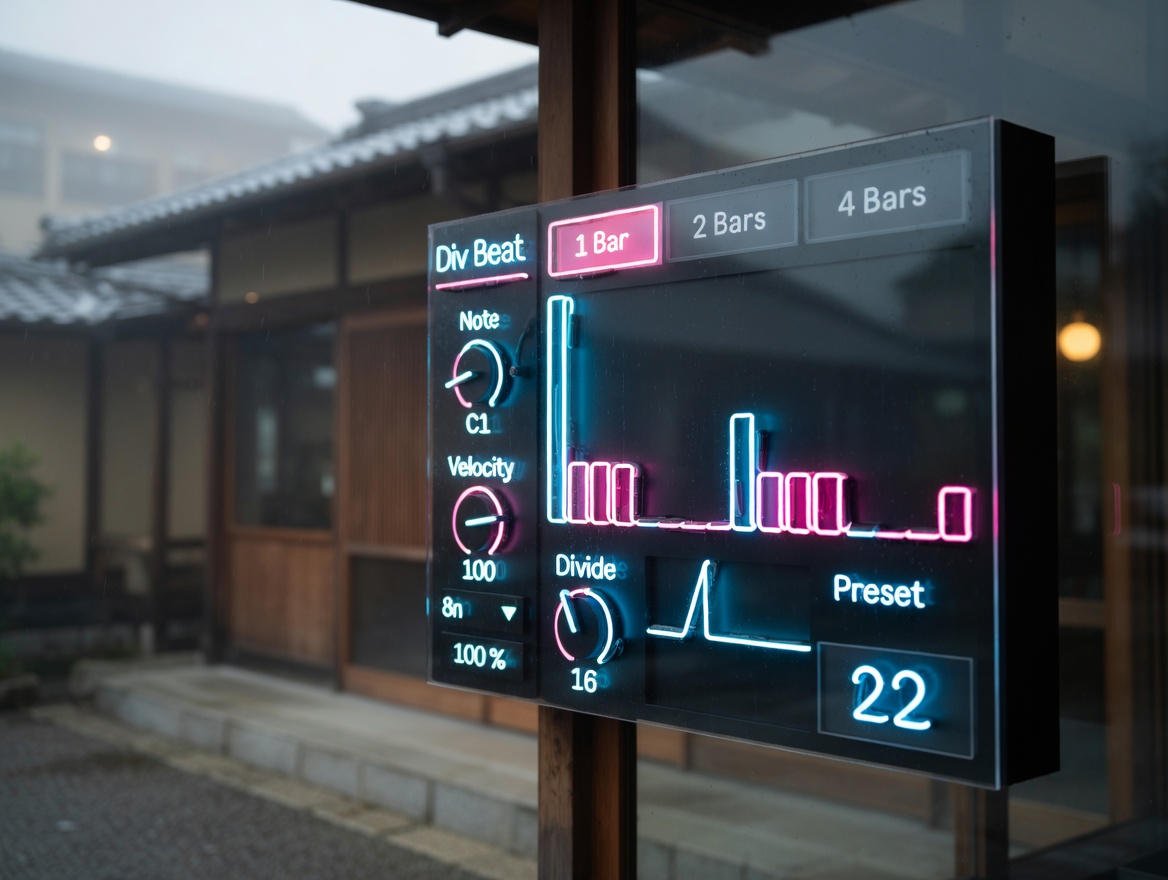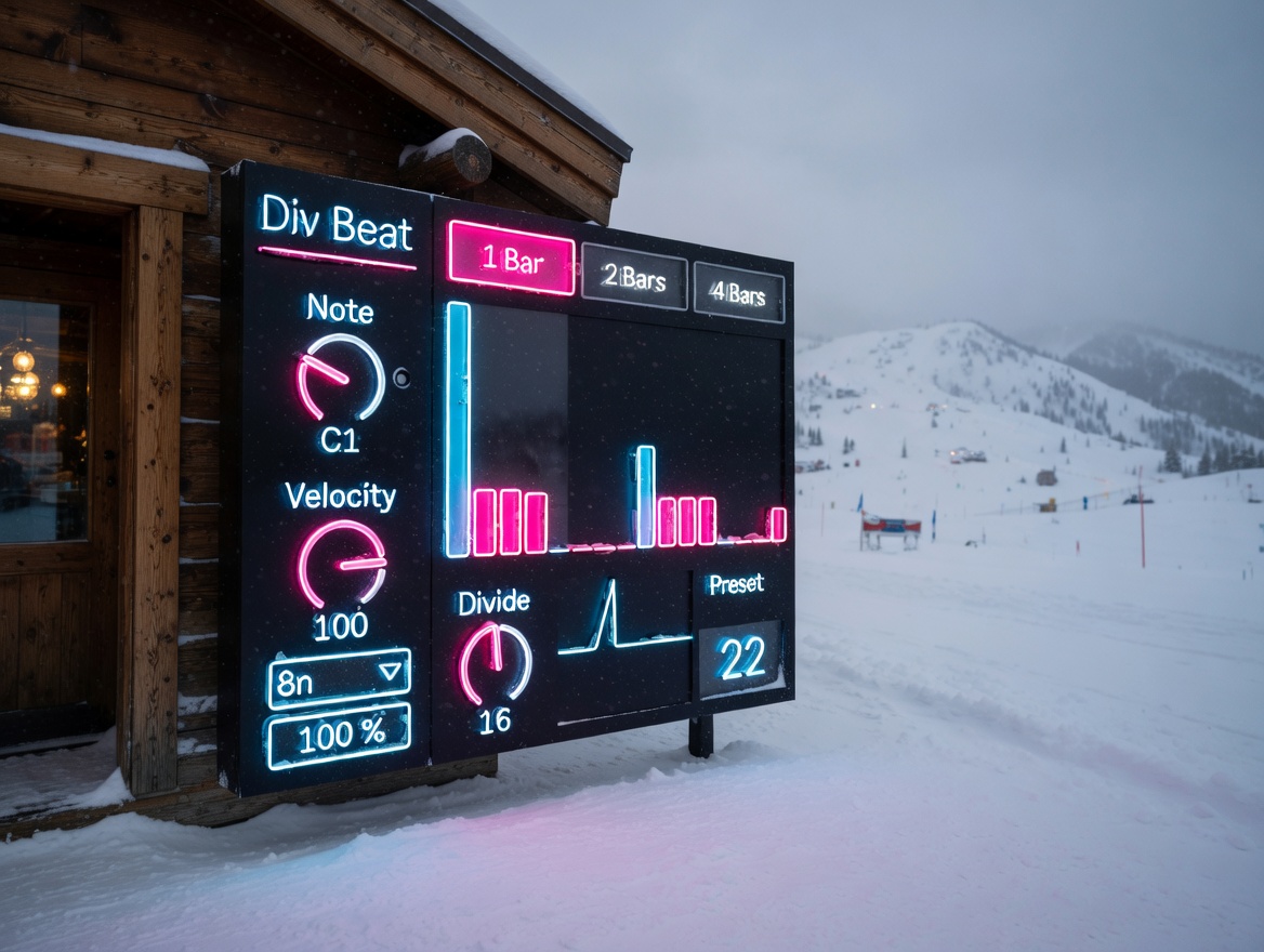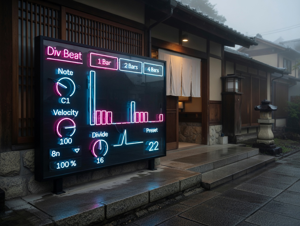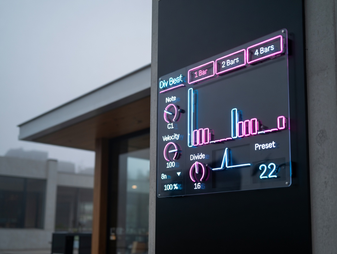 Div Beat does not treat chance as a coin flip. It lets you steer along a continuum between regular pulse and statistical texture. Small adjustments yield stable micro-variations. Bolder moves create emergent structures that still respect the grid you defined.