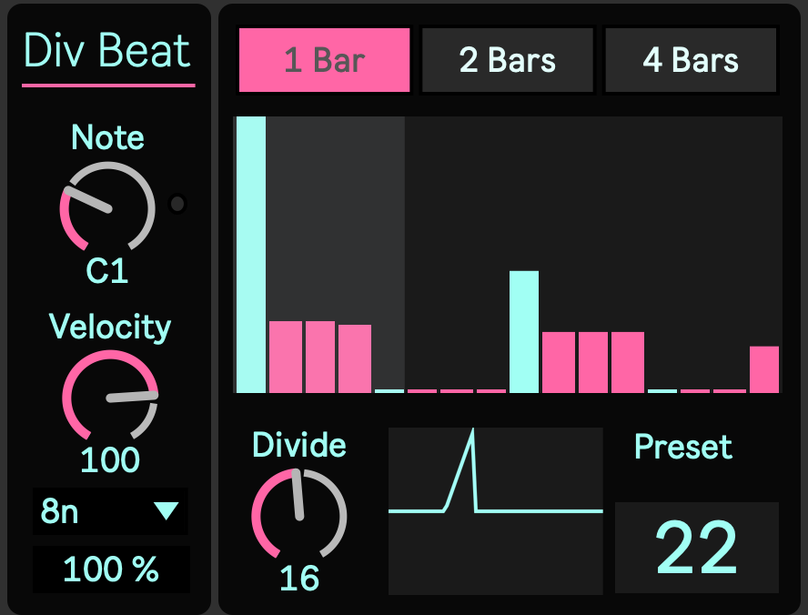 Iannis Xenakis expanded composition with stochastic processes. Div Beat follows that lineage and places it inside a practical workflow for Ableton Live. The interface exposes probability as a discrete, editable shape, so ideas that once lived on graph paper now respond to your touch in real time.