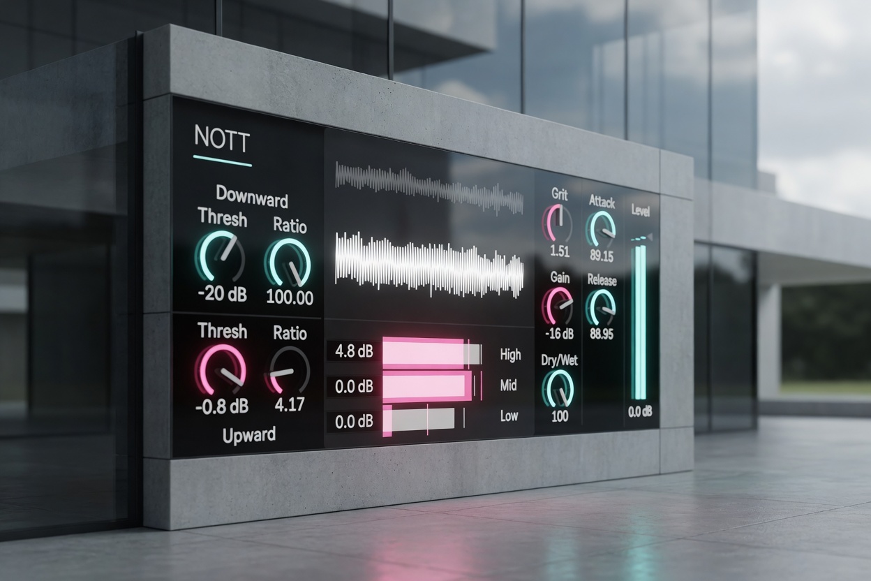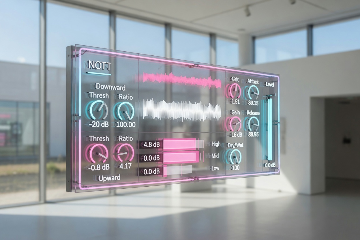 NOTT stands for New Over The Top. It is not positioned as a replacement, but as a re interpretation of what happens when multiband dynamics processing is pushed beyond corrective use into deliberate spectral reshaping.